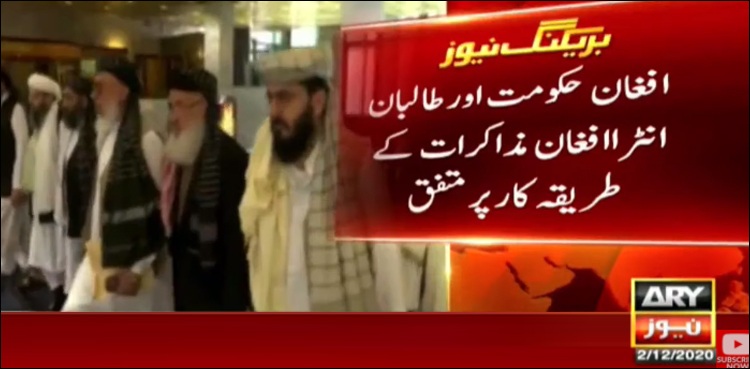 افغان میڈیا رپورٹ کے مطابق حکومت اور طالبان نے انٹرا افغان مذاکرات کے طریقہ کار پر اتفاق کرنے کی تصدیق کی اور متفقہ طور پر اعلان کیا کہ بات چیت کے دوران مذاکراتی ایجنڈے پر تبادلۂ خیال کیا جائے گا۔