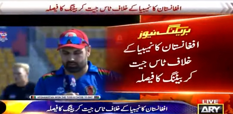 تفصیلات کے مطابق افغانستان نے نمیبیا کے خلاف ٹاس جیت کر بیٹنگ کا فیصلہ کیا ہے۔