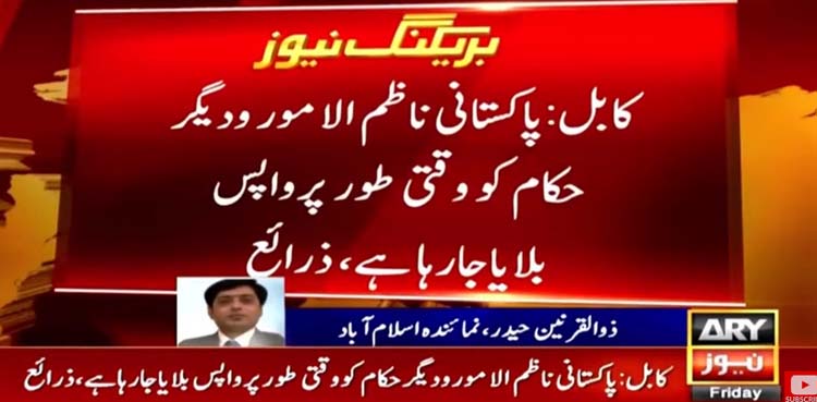 سفارتی ذرائع کا بتانا ہے کہ پاکستان نے افغانستان میں موجود سفارتی عملے کو وقتی طور پر واپس بلانے کا فیصلہ کیا ہے جس کے لیے خصوصی طور طیارہ بھیجا جائے گا۔