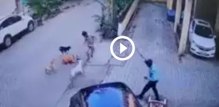 سامنے آنے والی ویڈیو میں دیکھا جاسکتا ہے کہ ایک پوسٹ مین سڑک سے گزر رہا ہے، اس دوران 5 کتے اس پر اچانک حملہ کردیتے ہیں، پوسٹ مین انہیں بھگانے کی کوشش کرتا ہے۔