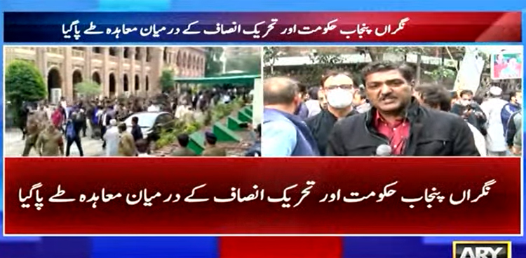 تفصیلات کے مطابق نگراں حکومت پنجاب اور تحریک انصاف کے درمیان معاہدہ طے پاگیا، معاہدہ 3 بجے لاہور ہائیکورٹ میں جمع کرایا جائے گا۔