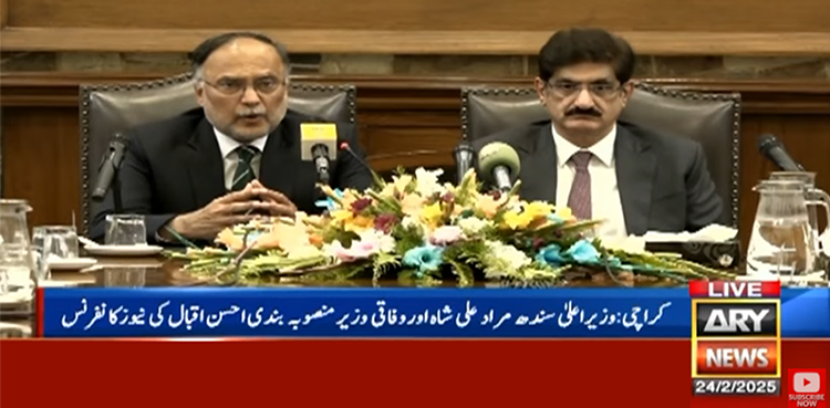 کراچی میں میڈیا سے گفتگو کے دوران وفاقی وزیر منصوبہ بندی و ترقی احسن اقبال نے سندھ میں جاری وفاقی منصوبے گنوا دیے۔