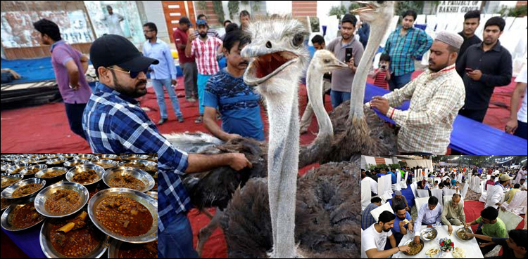 کراچی: شہر قائد میں روزہ رکھنے والے غریب و نادار افراد کے لیے فلاحی تنظیم کی جانب سے شتر مرغ کے گوشت کے پکوان سے سحر و افطار کا اہتمام کیا گیا۔