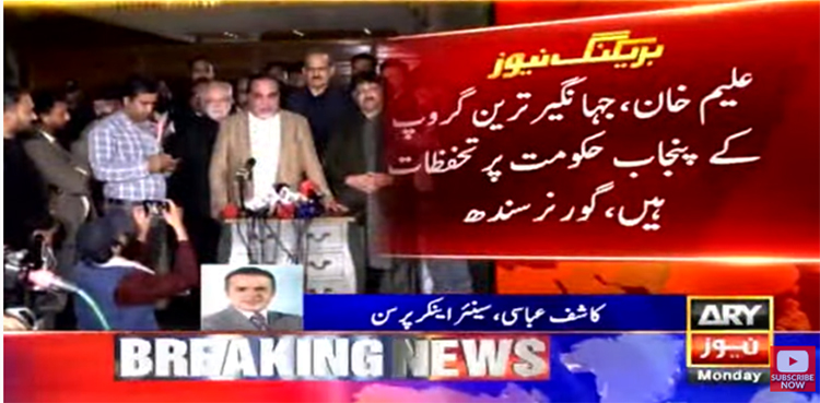 لاہور میں علیم خان سے ملاقات کےبعد گورنر سندھ نے میڈیاسےگفتگو کرتے ہوئے کہا کہ علیم خان میرےساتھ اور بھائی ہیں وہ آج بھی عمران خان کیساتھ ہیں جس پرخوشی ہے علیم خان، جہانگیرترین اور گروپ کے اپنے تحفظات ہیں پنجاب حکومت سےمتعلق تحفظات کا اظہار برملا کیا گیا۔