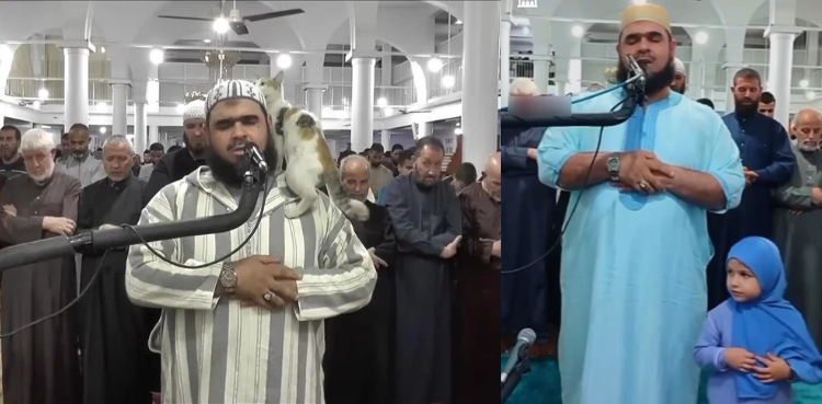 بلی والے ’امام‘ ایک بار پھر وائرل ہو گئے اس ویڈیو میں خوبصورت آواز میں قرات کرتے امام کے پاس کم عمر بچی کو دیکھا گیا ہے۔