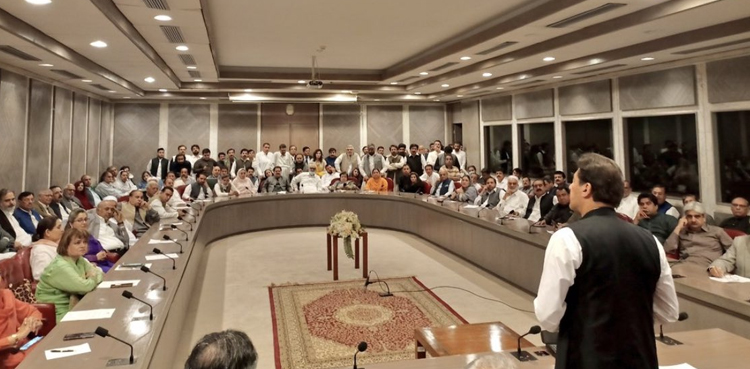 اجلاس کے پی ٹی آئی ممبران نے عمران خان پر بھرپور اعتماد کا اظہار کرتے ہوئے پارٹی قیادت کیساتھ کھڑے رہنے کی یقین دہانی کرادی۔
