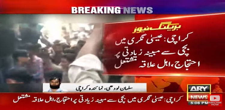 کراچی میں بچی سے مبینہ زیادتی، مشتعل مظاہرین کا ملزم کے گھر پر دھاوا