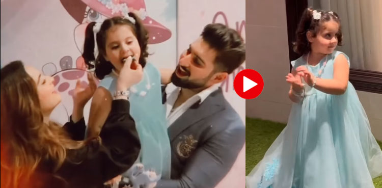 معروف اداکار جوڑی منیب بٹ اور ایمن خان کی ننھی بیٹی امل منیب کی تیسری سالگرہ کی ویڈیو سوشل میڈیا پر وائرل ہوگئی۔