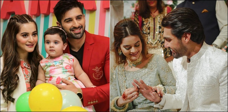 تفصیلات کے مطابق گزشتہ روز معروف اداکارہ منال خان اور اداکار احسن محسن اکرام نے منگنی کرلی، خالہ کی منگنی کے دوران ایمن خان کی بیٹی امل نے بھی معروف ادکارہ کنزہ ہاشمی سے دوستی کرلی۔