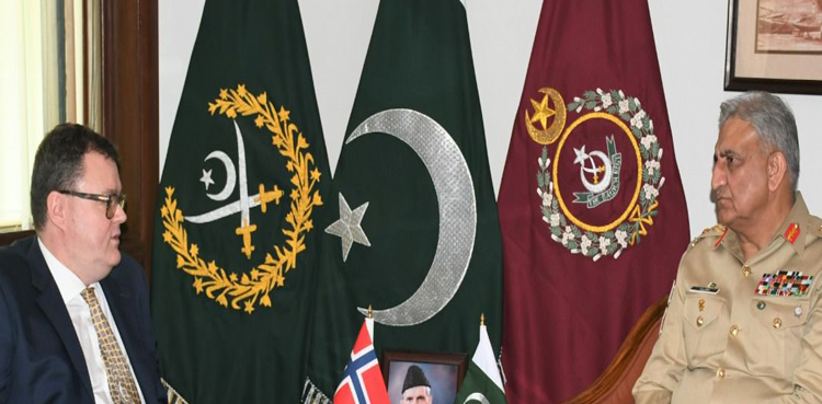 پاک فوج کے شعبہ تعلقات عامہ (آئی ایس پی آر) کے مطابق ناروے کے سفیر نے جنرل ہیڈ کوارٹرز راولپنڈی میں آرمی چیف جنرل قمر جاوید باجوہ سے ملاقات کی۔