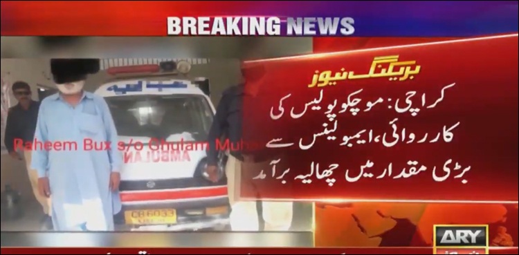 ادھر کراچی میں موچکو پولیس نے کارروائی کرتے ہوئے ایک ایمبولینس سے بڑی مقدار میں چھالیہ برآمد کر لیا ہے، اس کارروائی کے دوران ڈرائیور کو بھی گرفتار کیا گیا، ایس ایس پی مقدس حیدر کا کہنا تھا کہ ملزم ایمبولینس میں چھالیہ سپلائی کر رہا تھا، ملزم ناکوں سے بچنے کے لیے ایمبولینس کا استعمال کرتا تھا۔