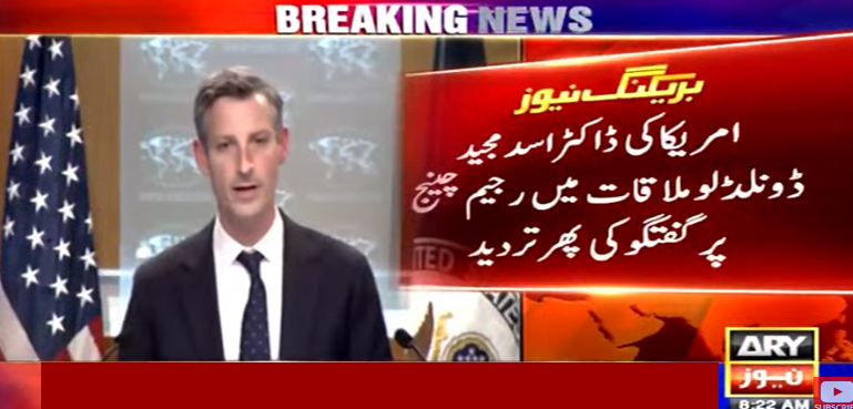 نیڈ پرائس نے کہا کہ ہم پاکستان میں کسی ایک امیدوار یا کسی ایک شخصیت کو دوسرے پر ترجیح نہیں دیتے۔ امریکا صرف پاکستانی عوام اور پاکستان کے آئینی نظام کے مفاد میں ہیں۔