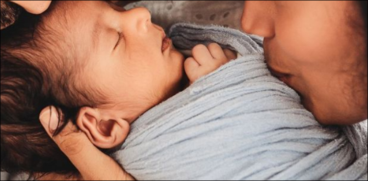 آمنہ شیخ نے لکھا کہ انہوں نے اپنے بیٹے کا نام عیسیٰ رکھا ہے، سوشل میڈیا پر شیئر کردہ تصویر میں دیکھا جاسکتا ہے کہ ان کے شوہر عمر فاروق اور ان کی بڑی بیٹی عیسیٰ کو پیار کررہے ہیں۔