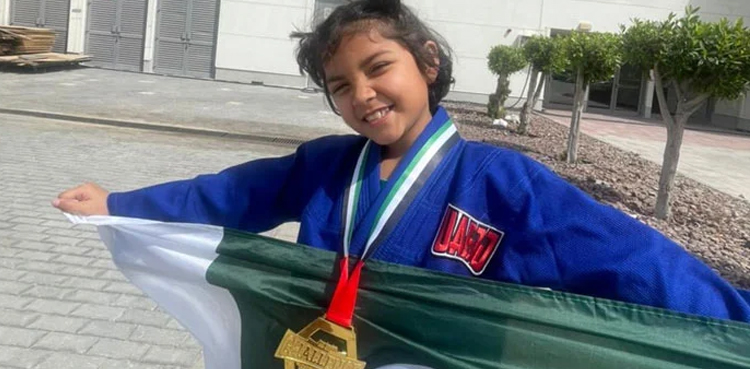 اے آر وائی نیوز کے مطابق پاکستان کی 7 سالہ عنایہ ڈار نے ابوظبی میں ہونے والے عالمی جوجسٹو چیلنج چیمپئن شپ میں گولڈ میڈل جیت لیا۔