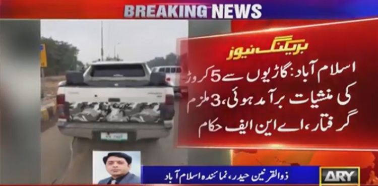اسلام آباد: اے این ایف حکام نے منشیات کی بڑی کھیپ کو منتقل کرنے کی کوشش ناکام بنادی ہے۔