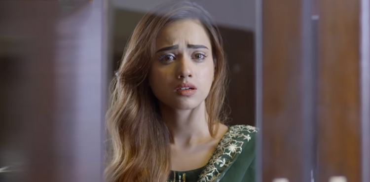 عائزہ پیچھے کھڑی ساس اور سسر کی تمام باتیں سن لیتی ہیں اور کمرے میں جاکر پھوٹ پھوٹ کر رو دیتی ہیں۔