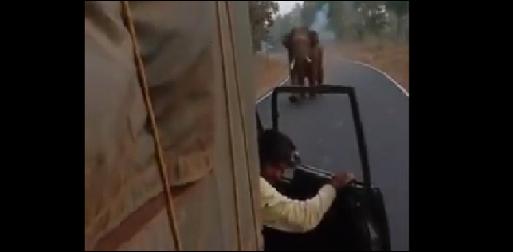 مذکورہ ویڈیو ٹرک میں پیچھے بیٹھے ایک شخص نے بنائی، ہاتھی کی ٹکر اس قدر زور دار تھی کہ پورا ٹرک ہل گیا تھا، بعد ازاں ہاتھی دوسری طرف روانہ ہوگیا۔