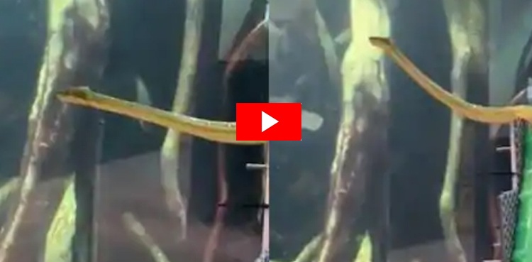 رپورٹ کے مطابق ‘ٹری بوا’ نامی سانپ کی حرکتوں سے یہ اندازہ لگایا لگایا جارہا ہے کہ وہ شاید مچھلیوں کو اپنی خوراک سمجھ رہا ہے یا پھر موقع دیکھ کر حملے کی تاک میں ہے۔ بہرحال مچھلیوں کو شیشے میں قید دیکھ کر سانپ بھی حیران رہ گیا، یہی وجہ ہے کہ وہ اپنی گردن اوپر نیچے کرکے انہیں دیکھ رہا ہے۔