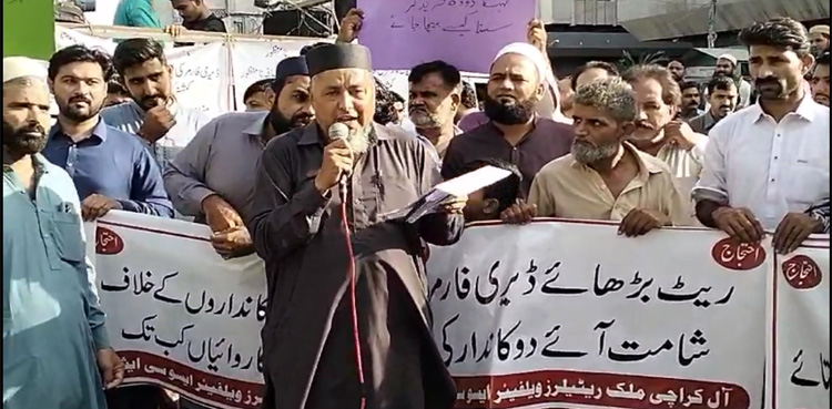 تفصیلات کے مطابق آل کراچی ملک ریٹیلرز ویلفیئر ایسوسی ایشن نے دودھ کی قیمت بڑھانے کے لیے پریس کلب پر احتجاج کیا، رہنماؤں نے انتظامیہ کو 72 گھنٹے کا الٹی میٹم دیا ہے کہ وہ دودھ کی قیمت کے حوالے سے فیصلہ کریں۔