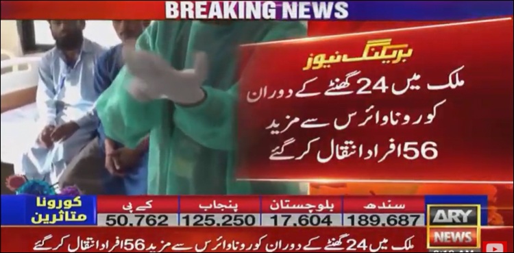تفصیلات کے مطابق کرونا وائرس کی خطرناک وبا نے حکومت وقت کی جانب سے مؤثر اقدامات اٹھائے جانے کے باوجود 24 گھنٹوں کے دوران مزید 56 افراد کی زندگیاں نگل لیں۔