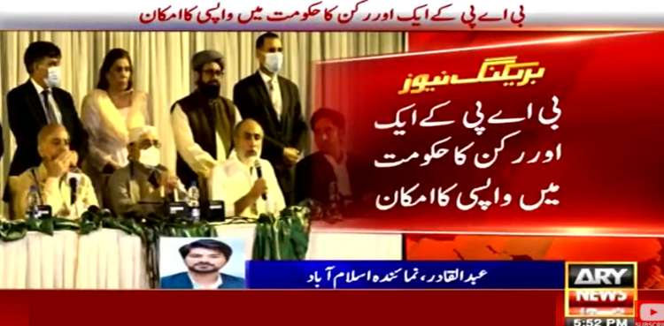 بی اے پی سے تعلق رکھنے والی زبیدہ جلال کے بعد ایک اور پارٹی رکن کے حکومت میں واپسی کا امکان ہے۔