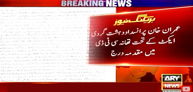 پاکستان تحریک انصاف کے چیئرمین اور سابق وزیراعظم عمران خان پر انسداد دہشتگردی کے تحت تھانہ سی ٹی ڈی میں مقدمہ درج کرلیا گیا ہے۔