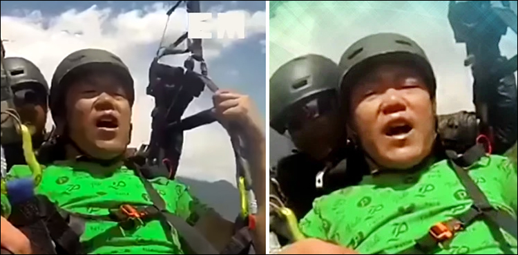 پیراگلائیڈنگ کرنے والے افراد کی کمپنی کی جانب سے یادگاری ویڈیو بھی ریکارڈ کی جاتی ہے جسے وہ اپنے دوستوں کے ساتھ شیئر کرتے ہیں مگر اب ایک ایسے بزرگ کی ویڈیو سامنے آئی جسے دیکھ کر صارفین ہنسنے پر مجبور ہیں۔