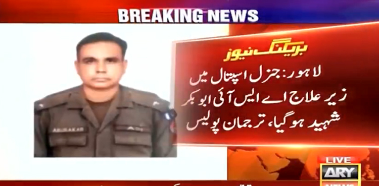 تفصیلات کے مطابق کالعدم تنظیم کے احتجاج کے دوران زخمی ہونے والا ایک اور پولیس اہلکار شہید ہوگیا ، اے ایس آئی ابوبکر لاہور کے جنرل اسپتال میں زیرعلاج تھا۔
