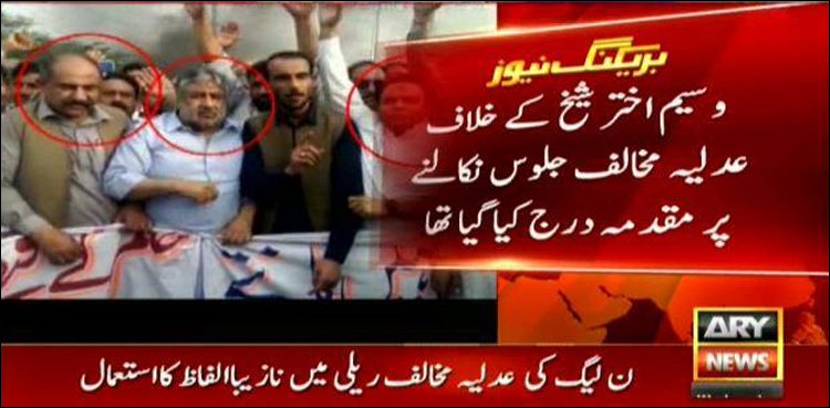 تفصیلات کے مطابق ڈسٹرکٹ بار قصور کے صدر نے درخواست دائر کی تھی کہ قصور میں 13 اپریل کو نکالی گئی ریلی میں ن لیگ سے تعلق رکھنے والے قومی اسمبلی کے رکن وسیم اختر اور صوبائی اسمبلی کے رکن نعیم صفدر نے عدلیہ کے لیے نازیبا زبان استعمال کی جس پر ملزمان کے خلاف سخت کارروائی کی جائے۔
