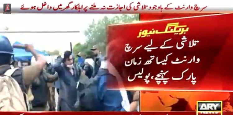 پولیس کا کہنا تھا کہ سرچ وارنٹ کے باوجود تلاشی کی اجازت نہ ملنے پر اہلکارگھرمیں داخل ہوئے، گھر کے اندر داخل ہوتے وقت سب سے آگے لیڈی پولیس اہلکار تھیں۔