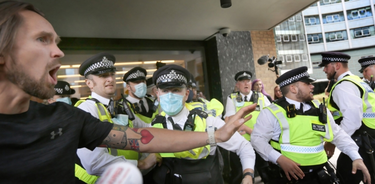 کرونا ویکسین مخالف مظاہرین کا احتجاج، لندن کا اہم علاقہ میدان جنگ بن گیا