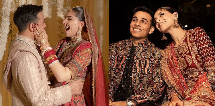 انو جین کی پوسٹ میں اپنی دلہن کے ساتھ شادی کے دو ایونٹس کی تصاویر شامل ہیں جن میں دونوں اپنی بے انتہا محبت کا بھی اظہار کررہے ہیں۔