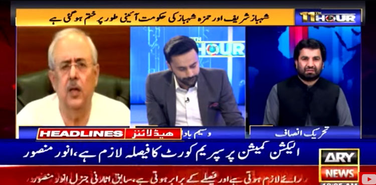 اے آر وائی نیوز کے پروگرام ’الیونتھ آور‘ میں گفتگو کرتے ہوئے سابق اٹارنی جنرل انور منصور نے کہا کہ الیکشن کمیشن فیکٹ سے متعلق فیصلے نہیں کرسکتی آرٹیکل 186 کے تحت ایک رائے دی جاتی ہے اور دو لوگوں کے درمیان کیس پر فیصلہ دیا جاتا ہے۔