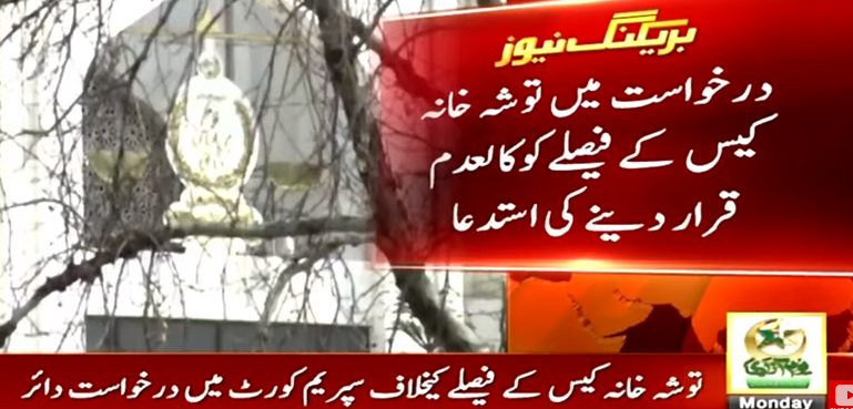 توشہ خانہ فوجداری کیس میں پی ٹی آئی چیئرمین کو تین سال قید اور 5 سالہ نا اہلی سزا کے خلاف سپریم کور ٹ میں درخواست دائر کر دی گئی ہے۔