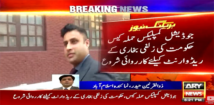 زلفی بخاری کے خلاف انسداد دہشت گردی ایکٹ کے تحت گولڑہ پولیس سٹیشن میں 18 مارچ کو ایف آئی آر درج کی گئی تھی۔
