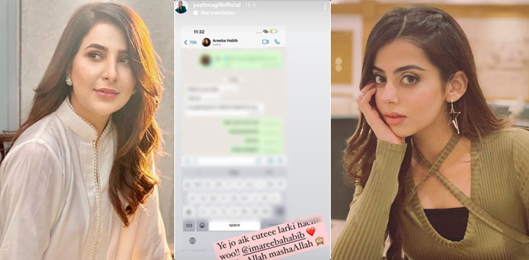 پاکستانی ڈرامہ انڈسٹری کی معروف اداکارہ اریبہ حبیب اور یشما گل کی واٹس ایپ چیٹ لیک ہوگئی۔