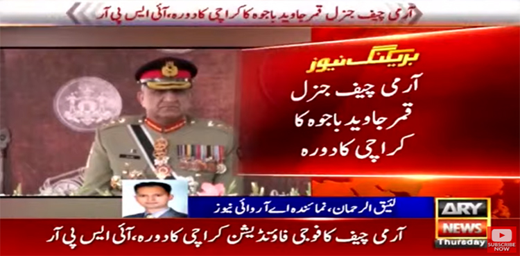 آرمی چیف کےکراچی پہنچنے پر کورکمانڈر لیفٹیننٹ جنرل محمدسعید نےاستقبال کیا۔