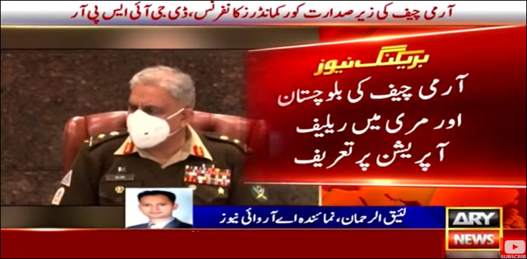 آئی ایس پی آر کے مطابق آرمی چیف کی زیرصدارت کورکمانڈرز کانفرنس منعقد ہوئی جس میں داخلی سیکیورٹی کی صورتحال اور بارڈر امور پر تبادلہ خیال کیا گیا۔
