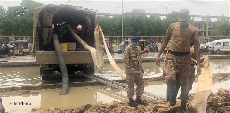 پاک فوج کے شعبہ تعلقات عامہ (آئی ایس پی آر) کے مطابق شدید بارشوں کے باعث سندھ کے کئی علاقے زیر آب آئے ہیں، کراچی اور حیدرآباد میں ریلیف اور ریسکیو آپریشن جاری ہے، کراچی کے علاقوں گلبرگ، لیاقت آباد، نیو کراچی میں میڈیکل کیمپ قائم کردیا گیا ہے۔