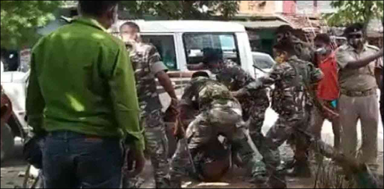 جھاڑکھنڈ: بھارت میں پولیس اہلکاروں نے مل کر سادہ لباس میں ملبوس فوجی اہلکار کی درگت بنا ڈالی۔