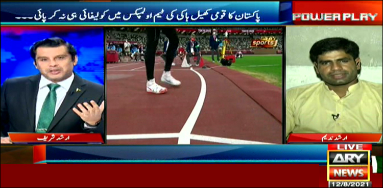 اے آر وائی نیوز کے پروگرام ’پاور پلے‘ میں گفتگو کرتے ہوئے ایتھلیٹ ارشد ندیم نے کہا کہ پاکستان پہنچنے پر پوری قوم نے استقبال کیا بہت خوشی ہوئی، محنت اور ٹریننگ کے ذریعے فائنل تک پہنچا تھا۔