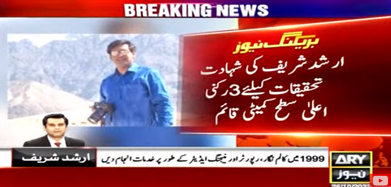 پاکستان کے سینیئر اور ہر دلعزیز صحافی واینکر ارشد شریف کی شہادت کے واقعے کی تحقیقات کے لیے وزارت داخلہ نے اعلیٰ سطح کی تحقیقاتی کمیٹی بنادی ہے۔
