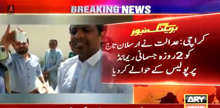 کراچی : انسداد دہشت گردی عدالت نے پی ٹی آئی رکن سندھ اسمبلی ارسلان تاج کو دو روزہ جسمانی ریمانڈ پر پولیس کے حوالے کردیا۔