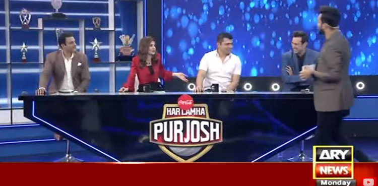 پروگرام ہر لمحہ پرجوش میں وسیم بادامی نے کھیلا اداکارہ عائشہ عمر کے ساتھ ’’معصومانہ میچ‘‘#ARYNews #HarLamhaPurjosh pic.twitter.com/oZd9BFGVz5