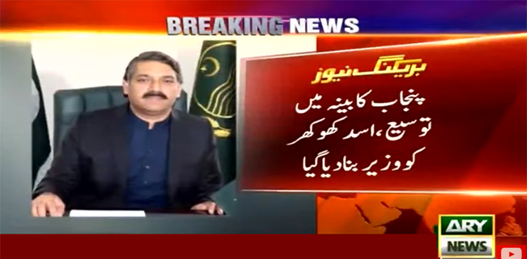وزیراعلیٰ عثمان بزدار نے پنجاب کابینہ میں توسیع کرتے ہوئے اسدکھوکھر کو وزیر بنا دیا۔