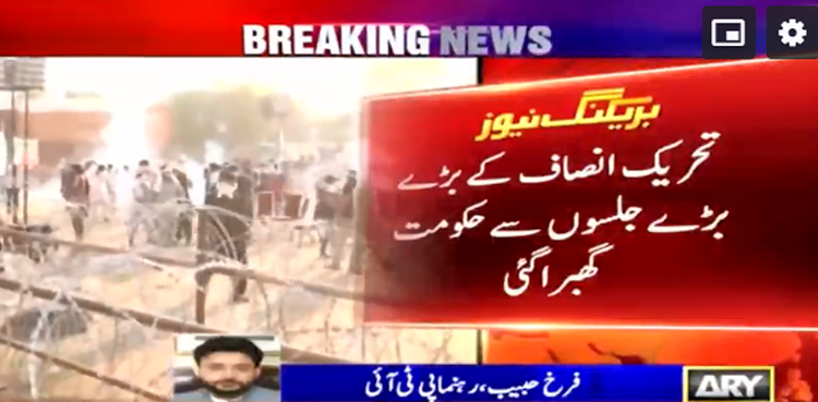 تحریک انصاف کے کارکنوں سے پنڈال خالی کرانے کیلئے پولیس کی آنسو گیس اورلاٹھی چارج کیا، جس کے باعث کئی کارکن زخمی ہوگئے۔