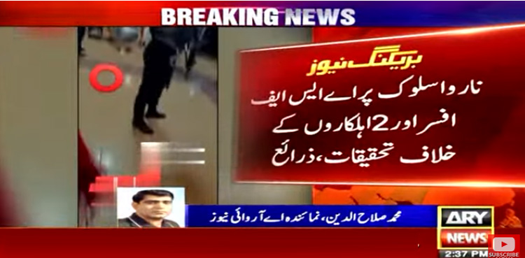 اے آر وائی نیوز کے مطابق ذرائع کا کہنا ہے کہ واقعہ انٹر نیشنل آرائیول پر 10مارچ کو پیش آیا تھا، ناروا سلوک پر اے ایس ایف افسر اور 2 اہلکاروں کیخلاف تحقیقات کی گئیں۔