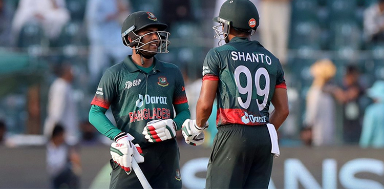 لاہور کے قذافی اسٹیڈیم میں کھیلے جارہے میچ میں بنگلادیش نے پہلے بیٹنگ کرتے ہوئے 5 وکٹوں پر 334 رنز بنائے۔ مہدی حسن اور نجم الحسین شنٹو نے سنچریاں اسکور کیں۔