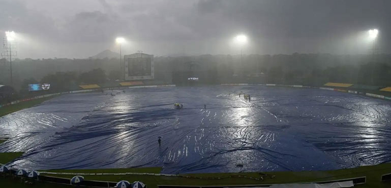 کولمبو میں آج علی الصباح بارش کے بعد یہ سلسلہ رکا تو امید ہوئی تھی کہ میچ ہوسکے لیکن میچ شروع ہونے سے قبل ایک بار پھر وہاں بارش برس پڑی جس کے بعد گراؤنڈ کو کورز سے ڈھک دیا گیا ہے۔ میچ کا وقت شروع ہوچکا ہے بارش رک چکی ہے لیکن پچ سے کور نہیں ہٹائے گئے ہیں۔