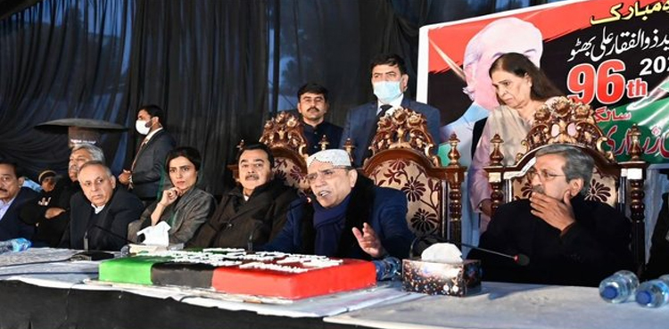 ملتان میں ذوالفقار بھٹو کی 96ویں سالگرہ پر آصف زرداری نے کارکنوں سےخطاب میں کہا کہ ذوالفقارعلی بھٹو کاریفرنس ہم نےسپریم کورٹ تک پہنچا دیا، ریفرنس بھیج رہا تھا تو کوئی سمجھ نہیں رہا تھا آج لوگوں کو سمجھ آگئی۔